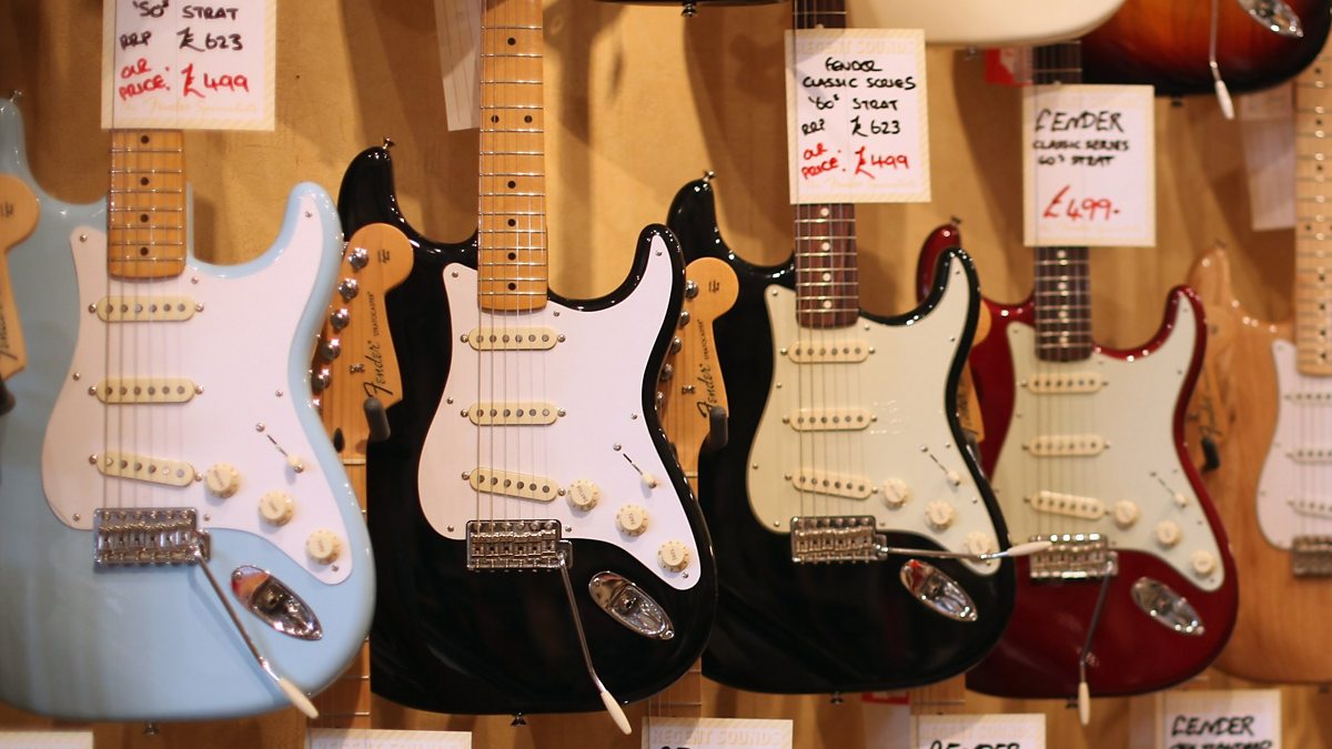 (Picture: Guitars hang in the Regents Sounds guitar shop on Denmark Street in London; Credit: Dan Kitwood/Getty Images)