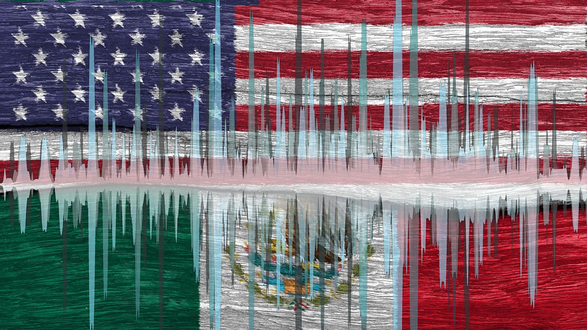 Image: Mexican and American flags painted on wood, overlaid with sound waves Credit: Flag and sound waves are both Thinkstock