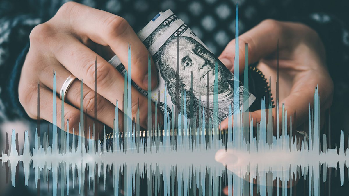Image: Hands holding US dollar bills overlaid with sound waves Credit: Hands and sound waves are both Thinkstock