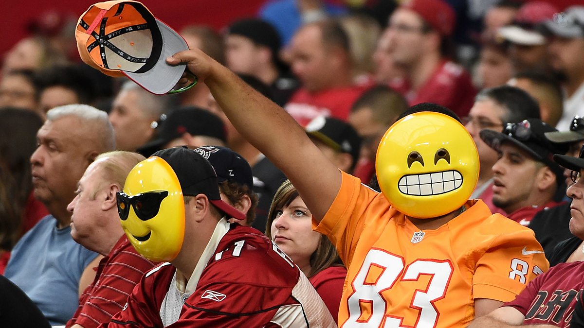 (Photo: American football fans wearing emoji masks. Credit: Norm Hall/Getty Images)