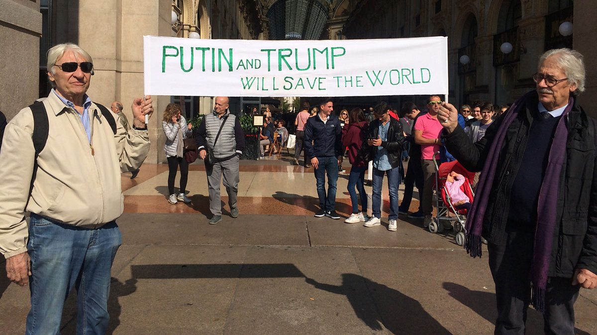 (Photo: Vladimir Putin and Donald Trump supporters. Credit: Getty Images)