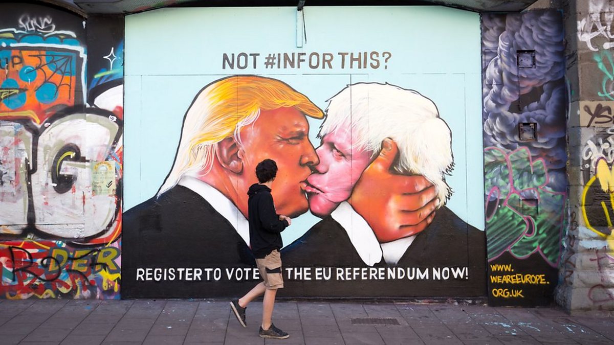 (Photo: Mural in London depicting Donald Trump kissing UK foreign secretary Boris Johnson. Credit: Getty Images)