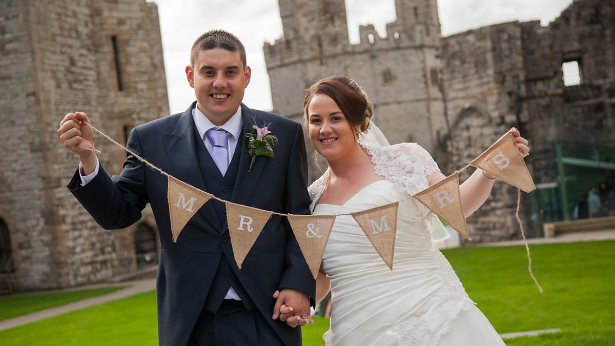 Does dim syniad gan Allan a Stephanie o Gaernarfon beth mae eu ffrindiau a'u teulu wedi'i drefnu ar gyfer eu diwrnod mawr. Will Allan and Stephanie be happy with their wedding day plans?