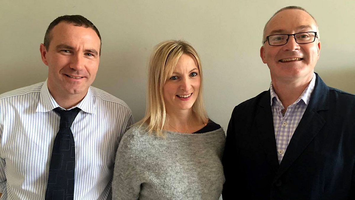 Iain Urchardan a' còmhradh ri luchd-ionnsachaidh na seachdain, Graeme agus Jane Welsh.