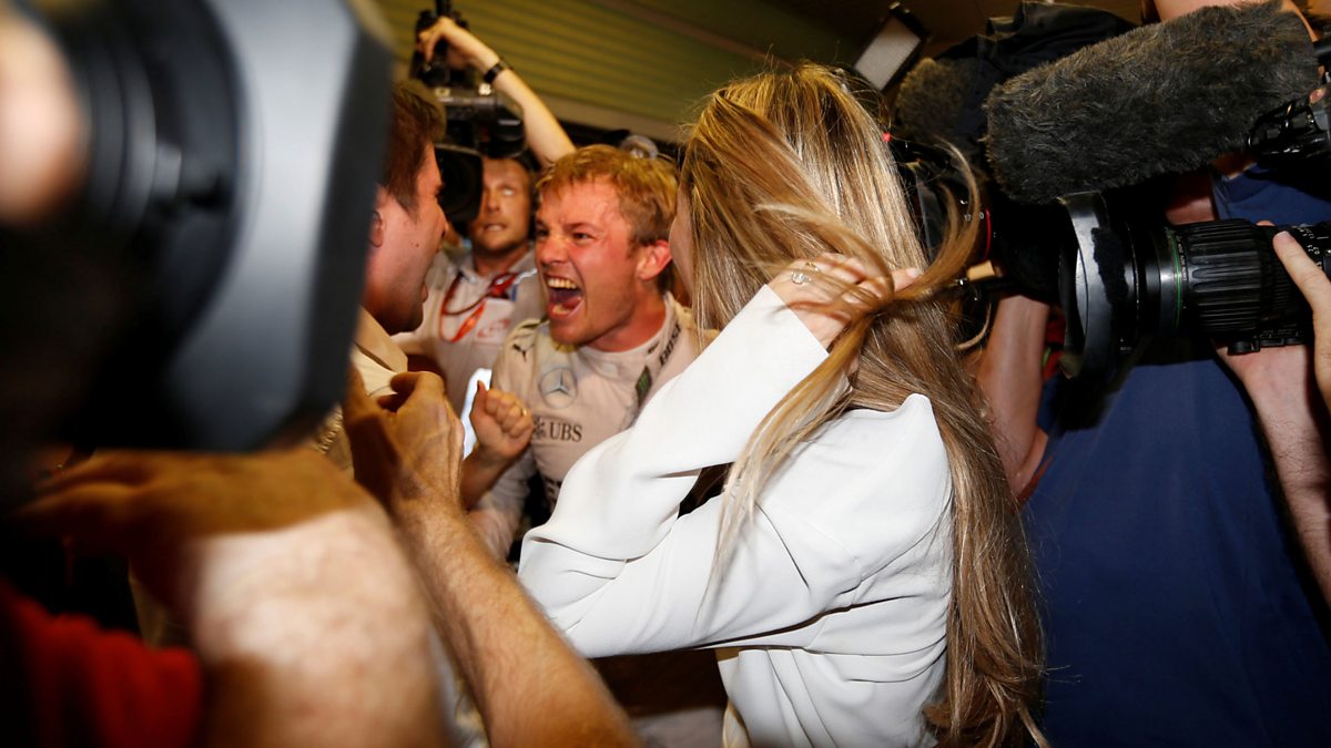 Mercedes' Nico Rosberg reacts to his maiden world championship win.