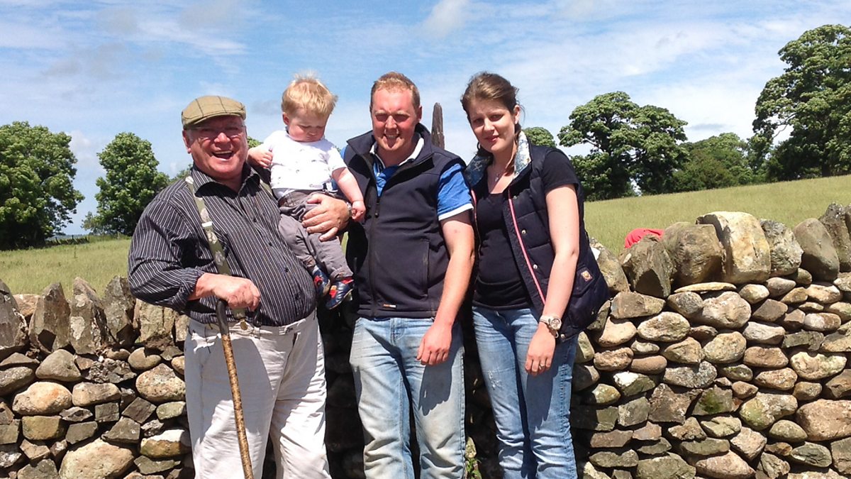 Dai Jones, Llanilar sy'n ymweld a Michael Jones a'r teulu, ar fferm y Ffridd, Llandygai, ger Bangor. Dai Jones visits Michael Jones and family, at Ffridd Farm, Llandygai, near Bangor.