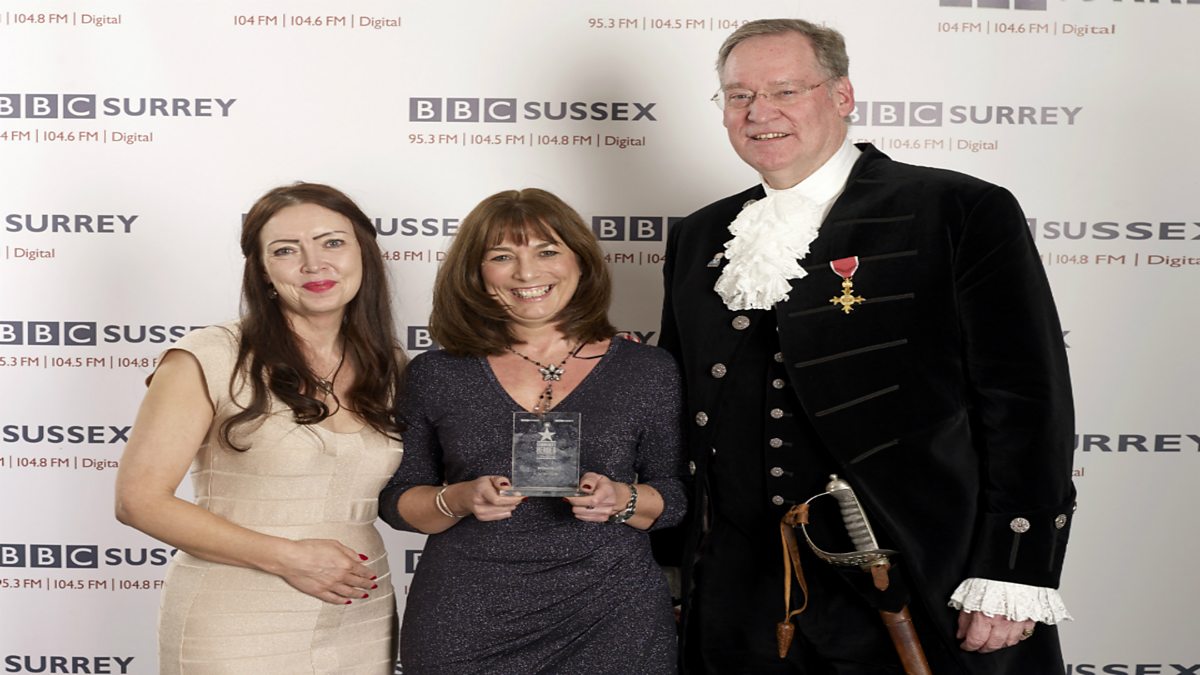Joyce Avard is recognised posthumously for her fundraising efforts in East Sussex. The High Sheriff of West Sussex, Mark Spofforth, presents the award to Joyce’s niece, Jackie.