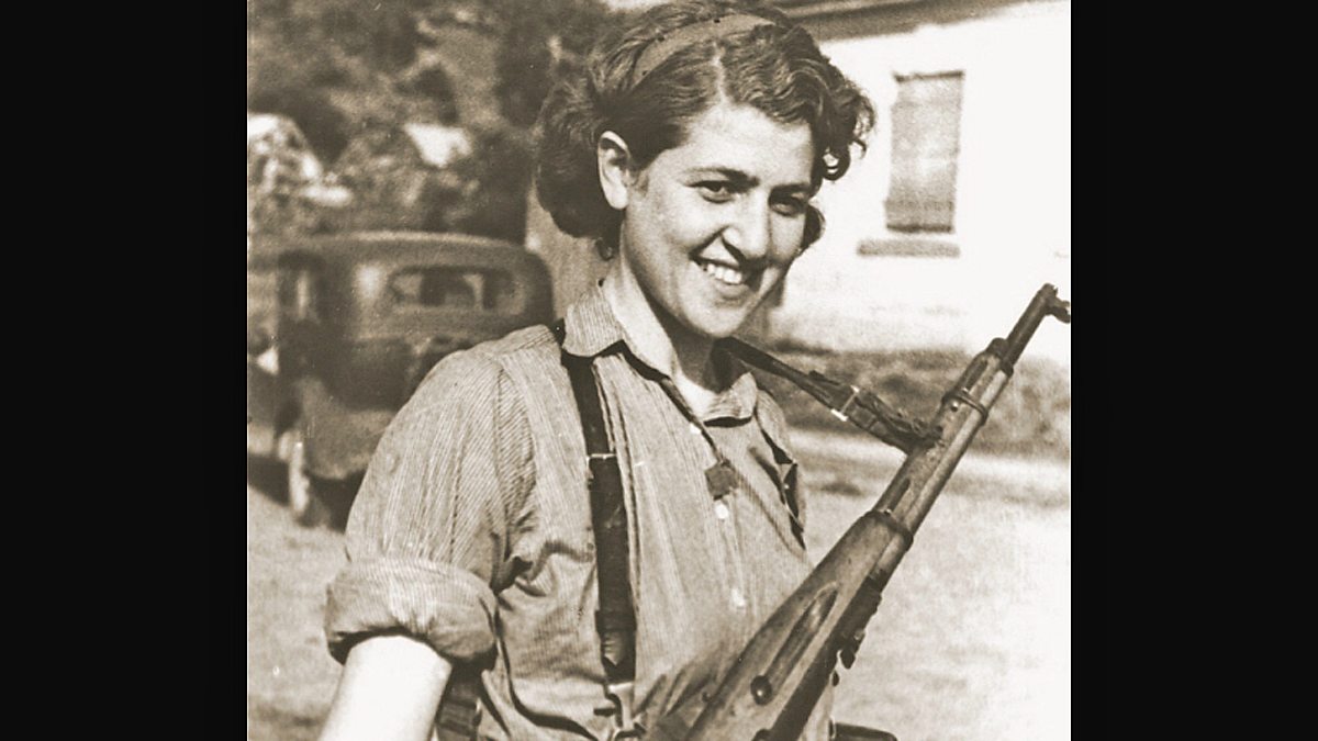 Photo: Sara Ginaite, a Jewish Lithuanian partisan , during the liberation of Vilnius, 1944. (USHMM)