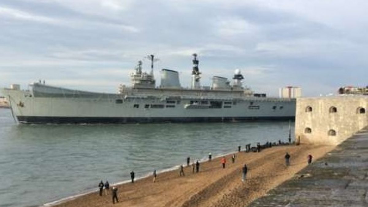 Bon Voyage: HMS Illustrious leaves Portsmouth Dockyard