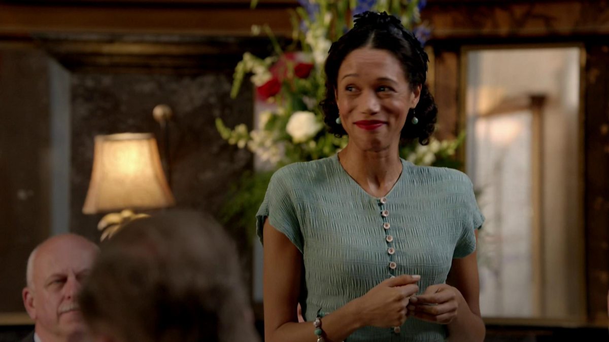 Rita, rather nervously, gives a speech at Dieter and Anna's wedding reception.