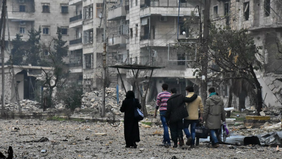 (Picture: Syrian residents in Aleppo. Credit: George Ourfalian/AFP/Getty Images)