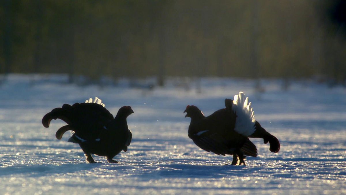 In the snow of Finland, black grouse males battle each other for the attention of females. The winner takes all, and the loser may not get the chance to mate - ever.