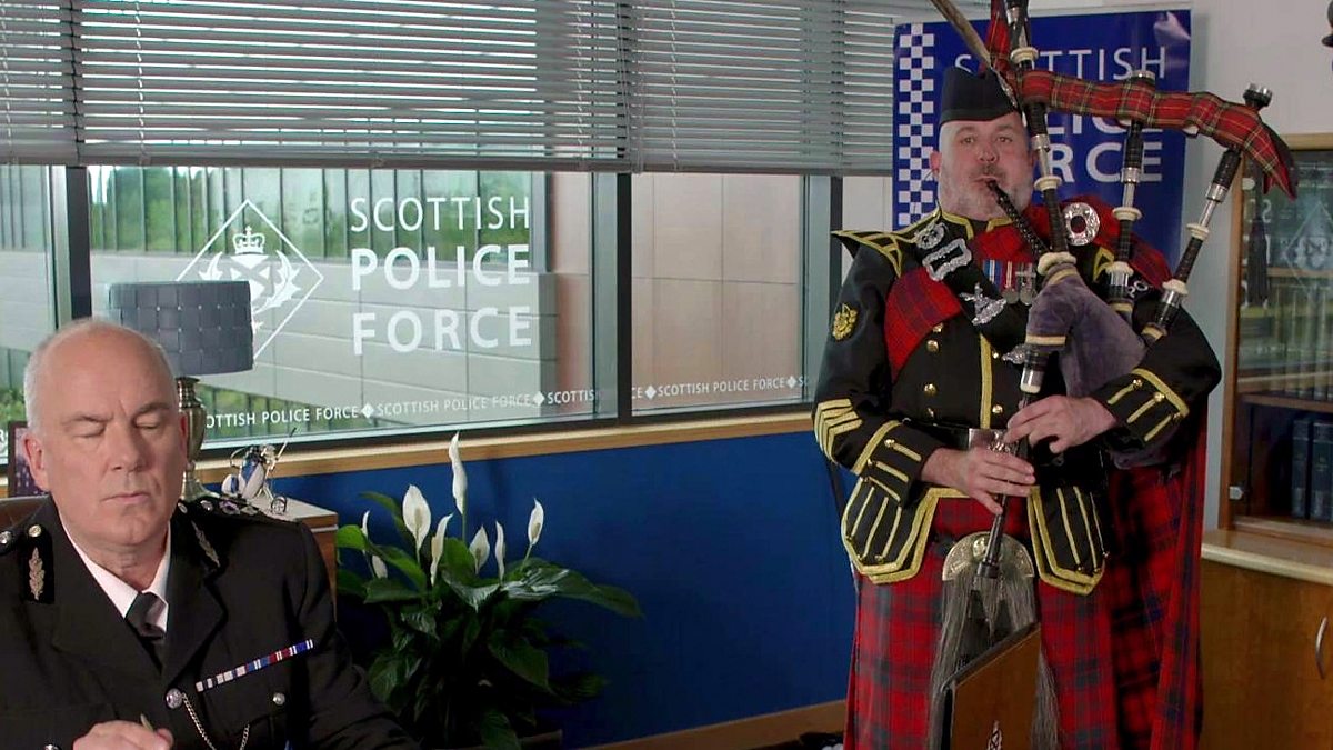 Chief Commissioner Miekelson decides on some songs for the Scottish Police Force Pipeband