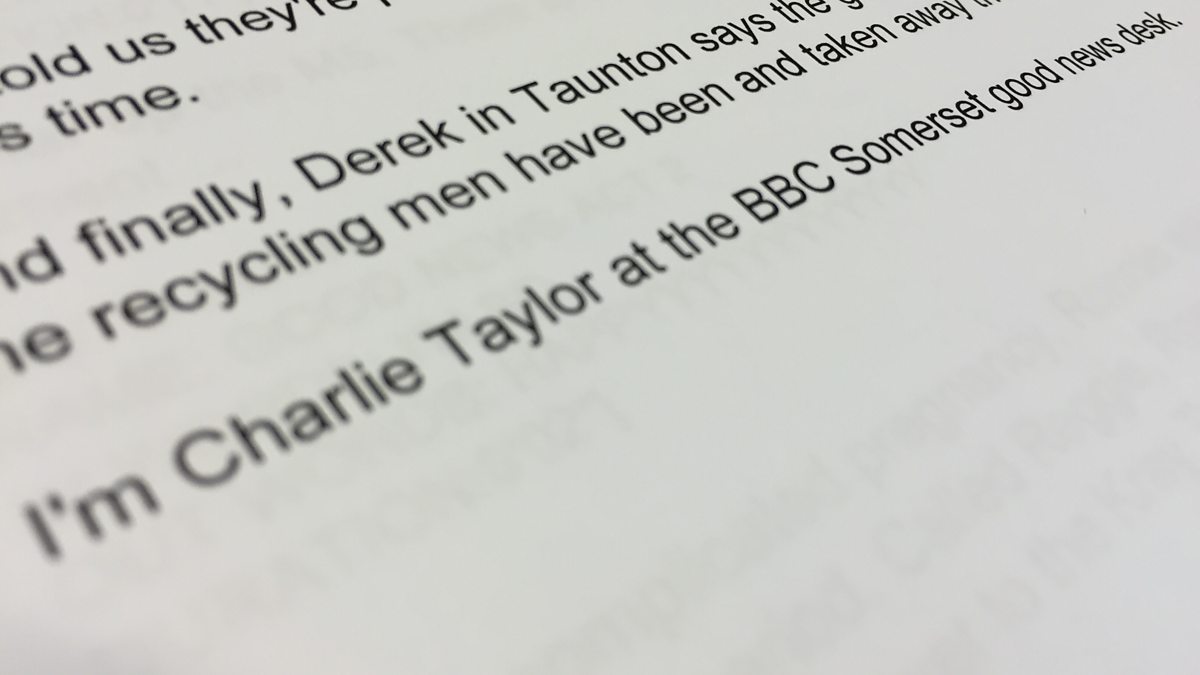 Charlie Taylor reads BBC Somerset's good news bulletin.