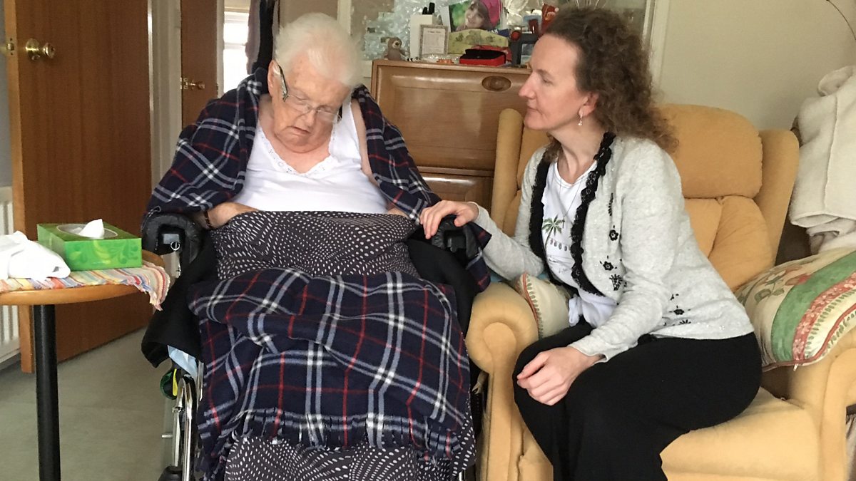 An honest and emotional account from 47-year-old Sue who cares for her Mum around the clock. For the last six years she has cared for 88-year-old, Patricia at home, giving one to one care 24/7. She is supported by private and publically funded carers, but the emotional cost of caring is taking its toll. Reporter Ena Miller spent time with both women.