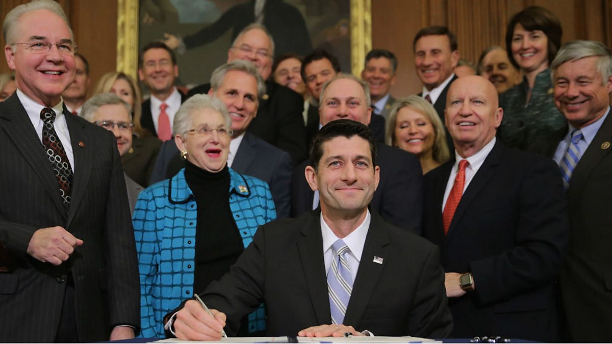 Picture: Speaker of the House Paul Ryan signs legislation to repeal the Affordable Care Act