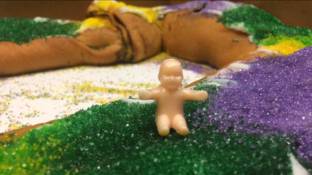 The Arts Hour and guests race to find the baby in the classic New Orleans king cake.
