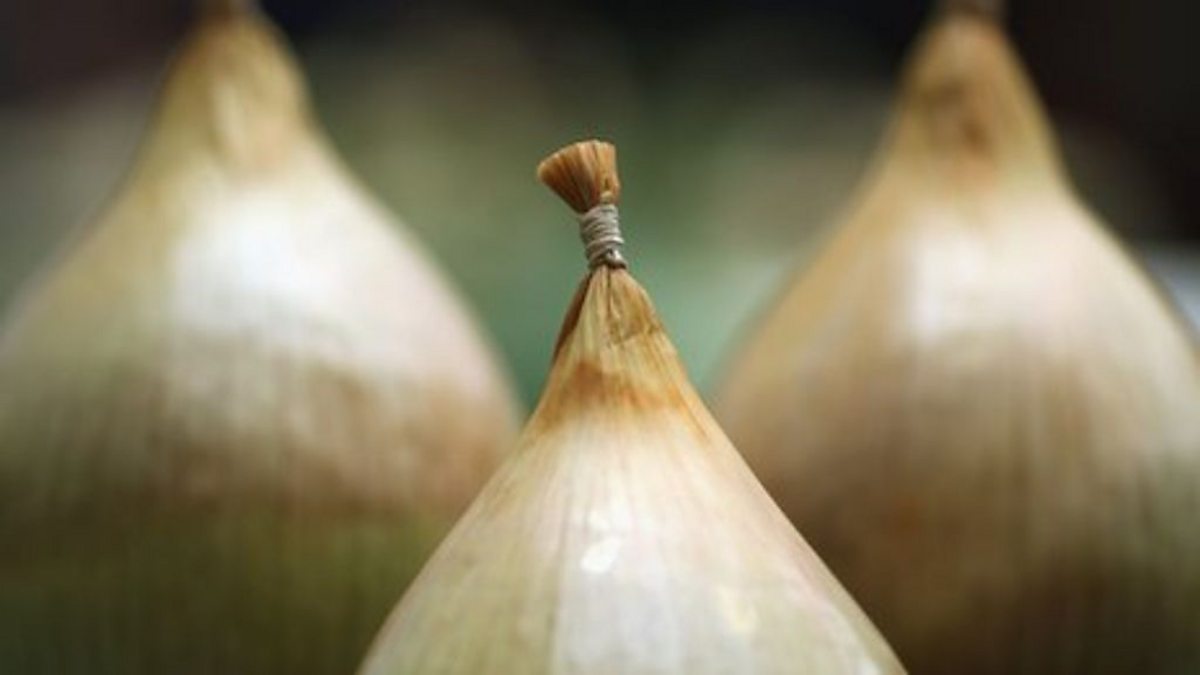 Medwyn Williams yn rhoi her tyfu nionod i Gerallt Pennant a Tudur Owen.