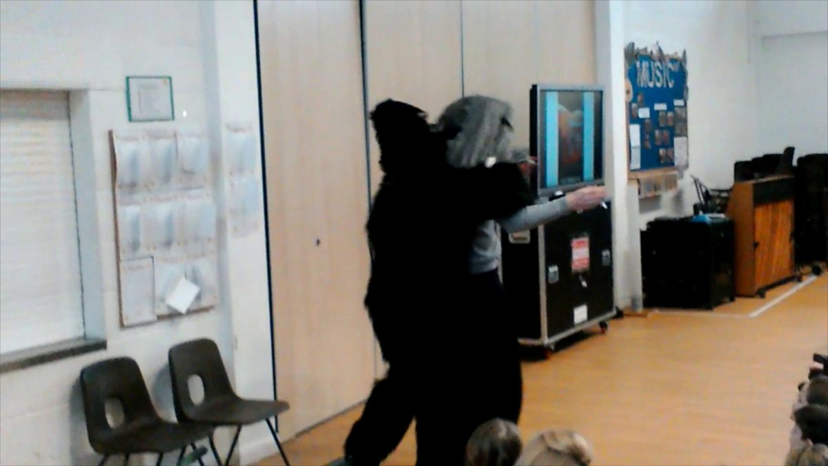 A gorilla surprised pupils and the headteacher at Midsomer Norton Primary School.