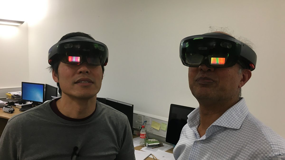 Prof Sanjeev Gupta puts a VR headset on Kevin Fong and transports him to the middle of Gale Crater on Mars. Stunning barren mountains, fields of black rippled sand dunes and remarkable geological discoveries about the planet’s past are all around him, virtually. As a member of NASA’s Curiosity rover mission, Professor Gupta uses the Hololens in conjunction with software developed by the space agency and Microsoft. The OnSight system immerses wearers in the Martian landscape from the perspective of the Curiosity robot’s cameras, enabling Professor Gupta to do geological fieldwork on Mars from his office at Imperial College, London.