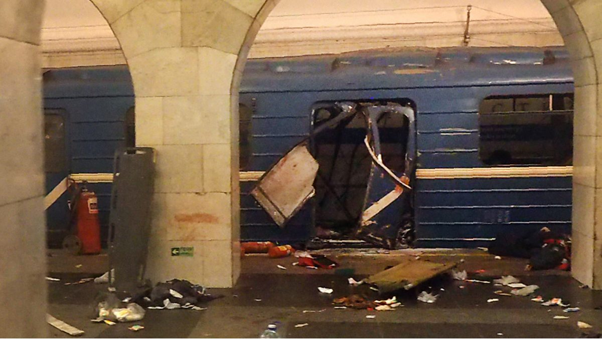 (Photo: Damaged train carriage at the Technological Institute metro station in St Petersburg. Credit: Getty Images)