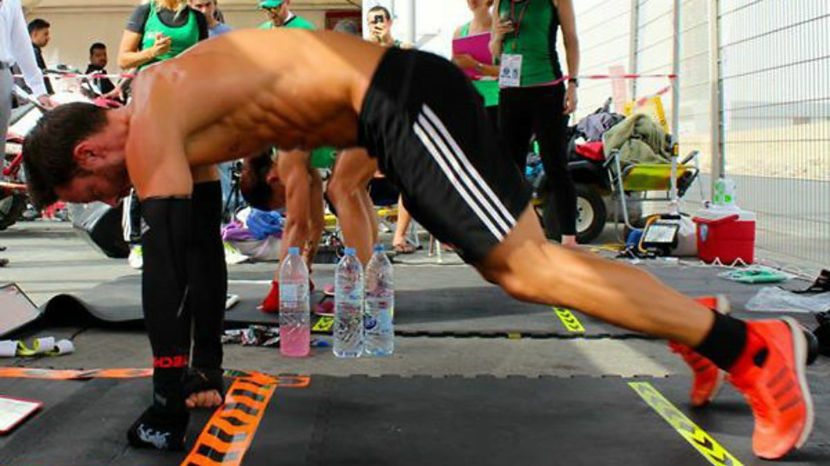 Chris learns how to do a burpee from the world record holder Lee Ryan!