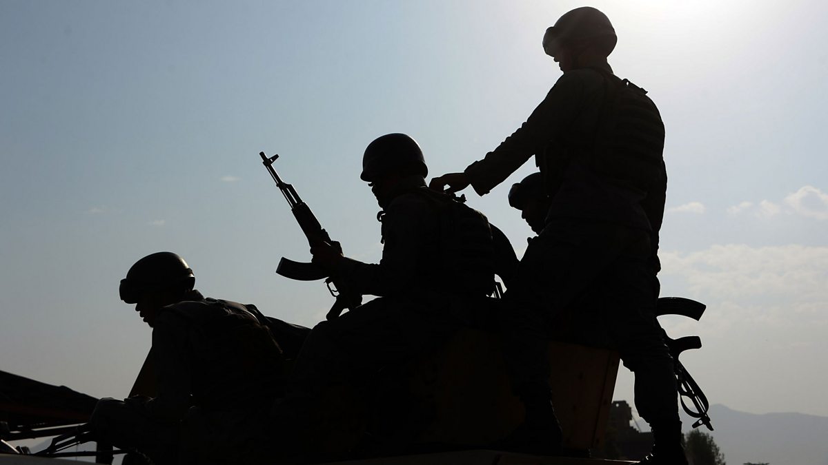 Image: Afghan security personnel on a military vehicle, Credit: Noorullah Shirzada/AFP/Getty Images