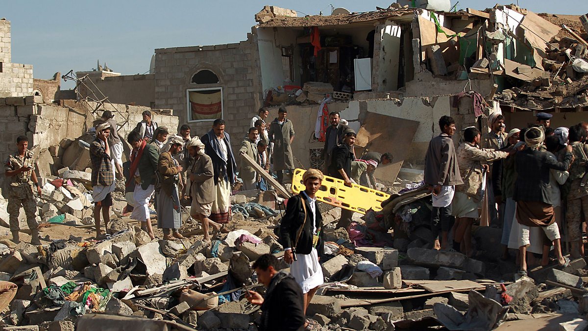 (Photo: Yemenis search for survivors at the site of a Saudi air strike against Huthi rebels near Sanaa Airport. Credit: Getty Images)