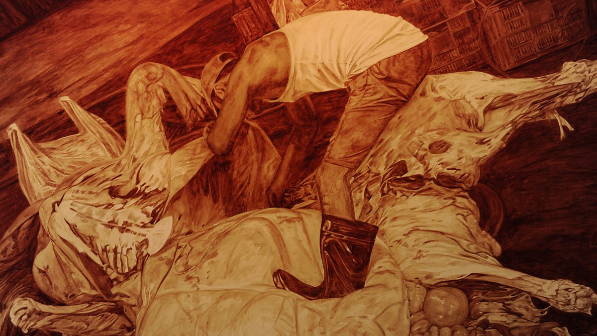 The EvidencePreventing EpidemicsPaintings of an abattoir painted with the blood from slaughtered cattle