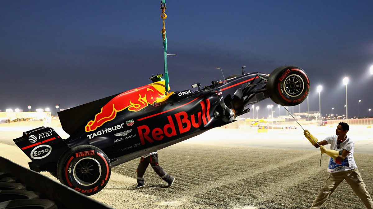 Red Bull's Max Verstappen crashes out of the Bahrain Grand Prix after his brakes failed.