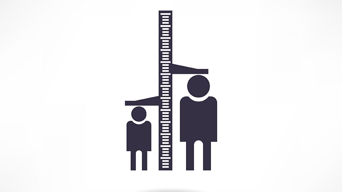 (Photo: Graphic illustration of the height measurement of a tall and short person. Photo credit: Shutterstock)