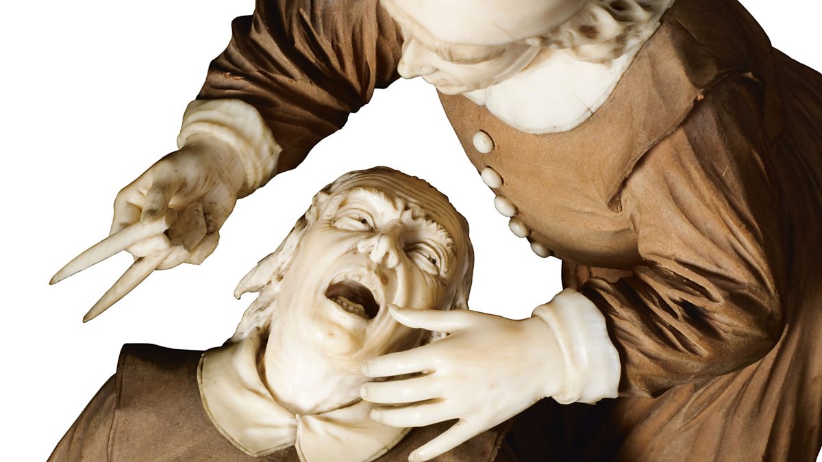 (Image: Wood and ivory statue of tooth pulling scene in 1600s. © Wellcome Library, London ).