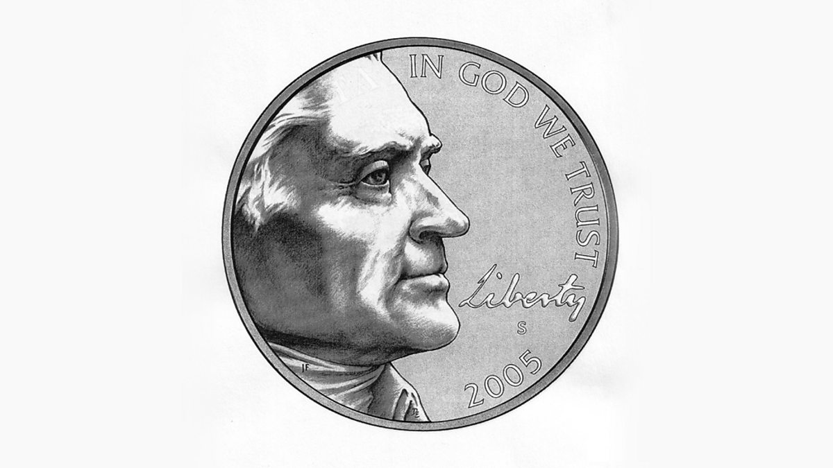Photo: President Thomas Jefferson on the obverse (heads side) of the US nickel (Credit: US Mint via Getty Images)