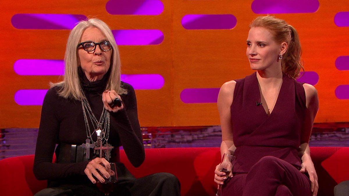Diane Keaton kisses Kevin Bacon and Jessica Chastain