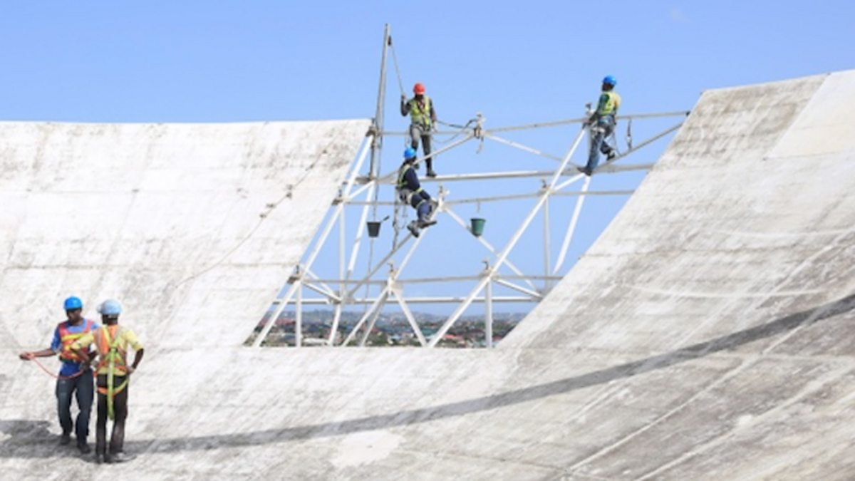 Picture: Men working on Ghana radio telescope. Photo courtesy SKA SA