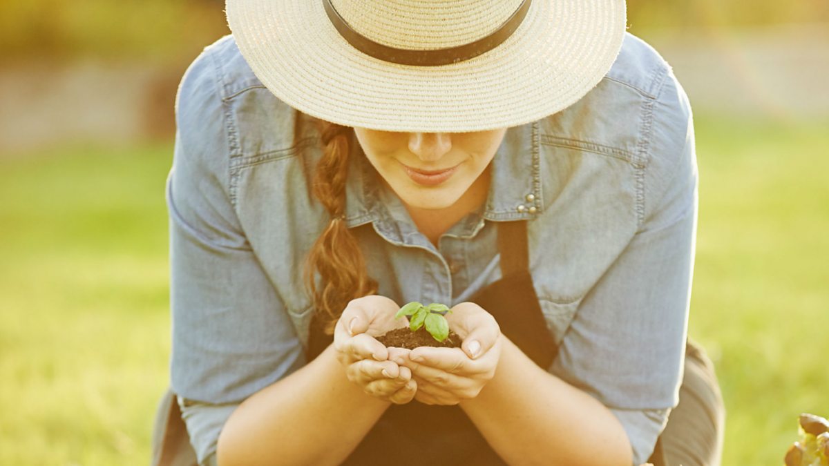 (Image: Women holding plant in her hands. Credit: Getty Images)