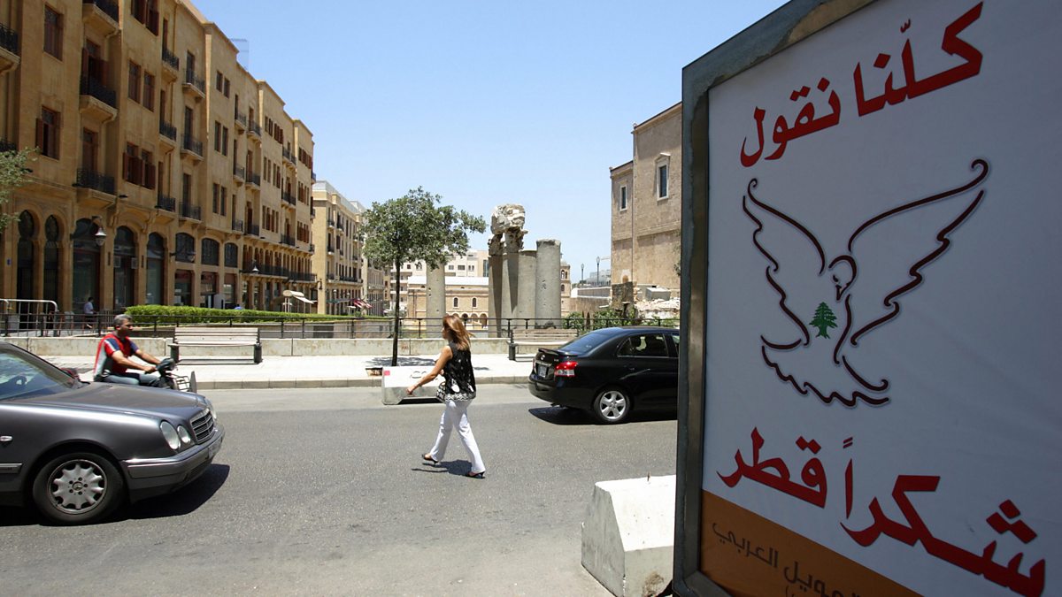 (Image: A poster in Beirut, Lebanon in June 2008 reads, "We all say: thank you Qatar". Credit: Getty Images.)