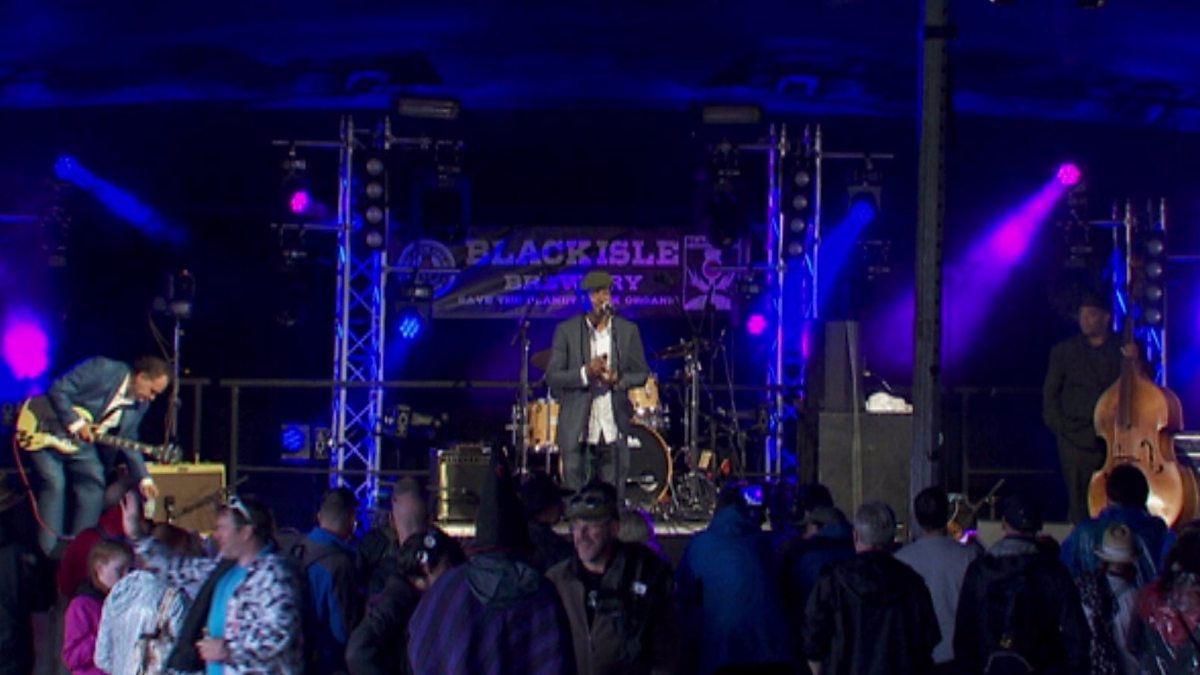 Errol Linton agus a chòmhlan a’ cluich aig Belladrum. Errol Linton and his band perform a set at Belladrum.
