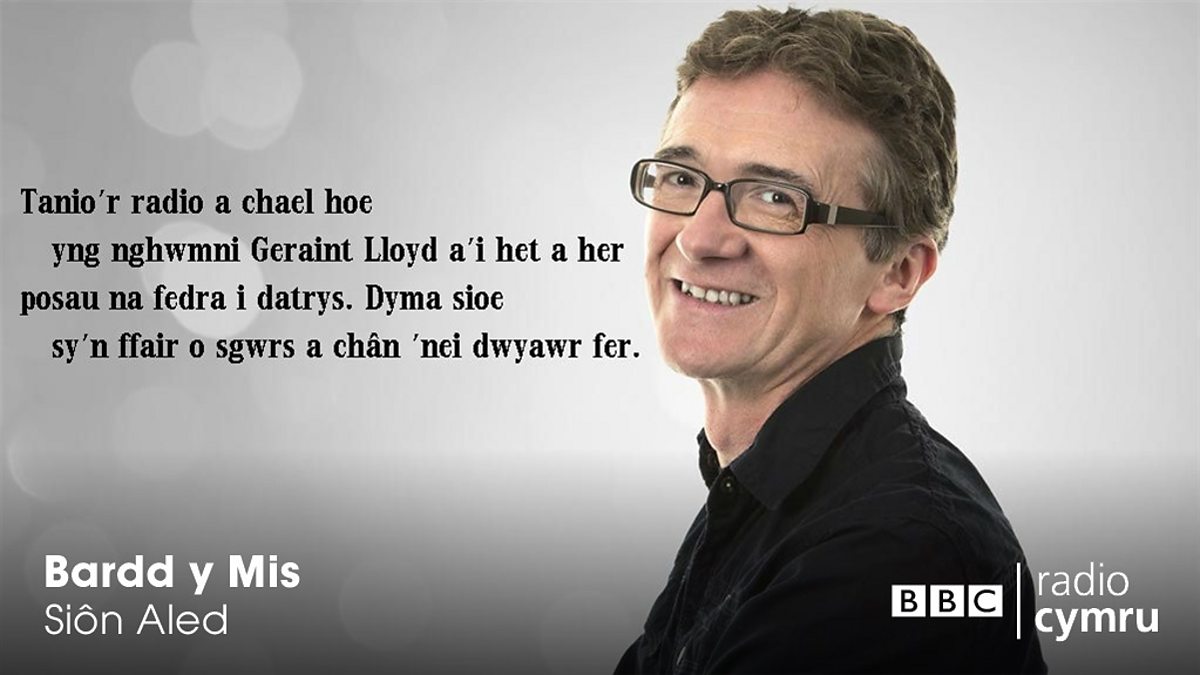 Dr Siôn Aled Owen yw bardd Radio Cymru ar gyfer Mis Gorffennaf 2017.