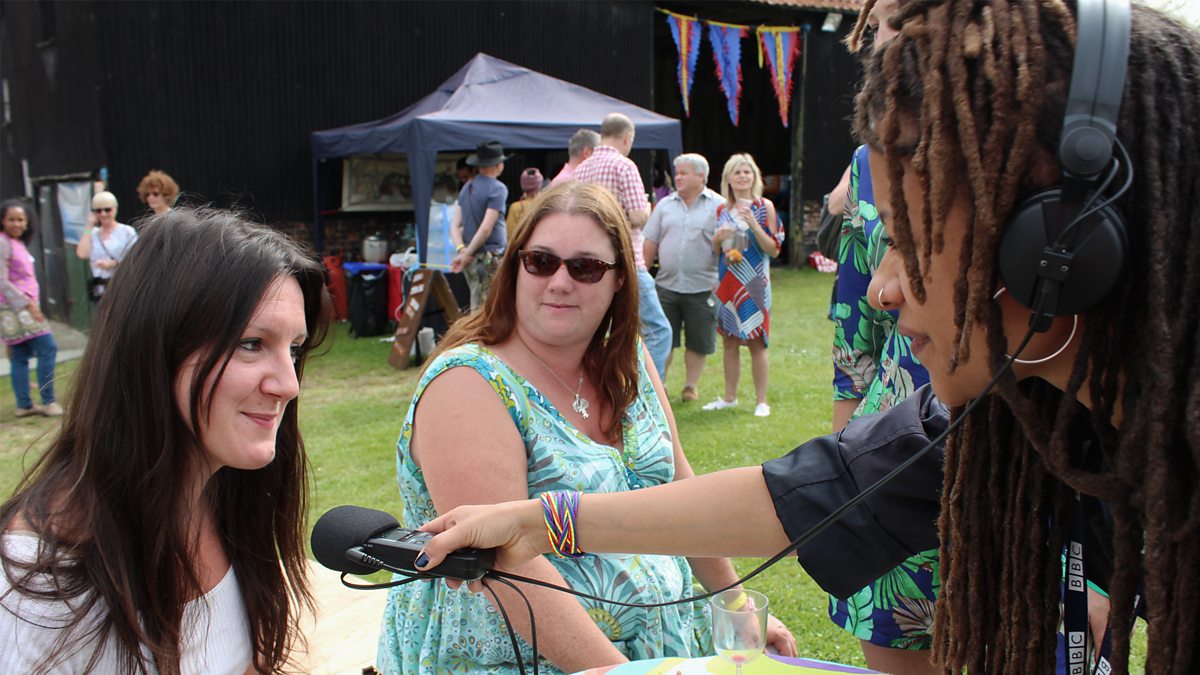 BBC Introducing reporter Amy Nomvula chats to festival goers at Southburgh.
