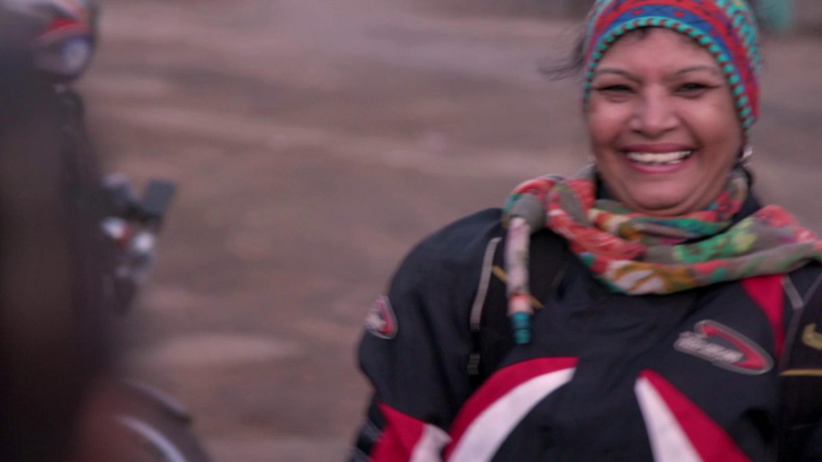 A group of bikers take Babita on the first leg of her journey north from Adipur. But these are female bikers, challenging the stereotypes of women in India.