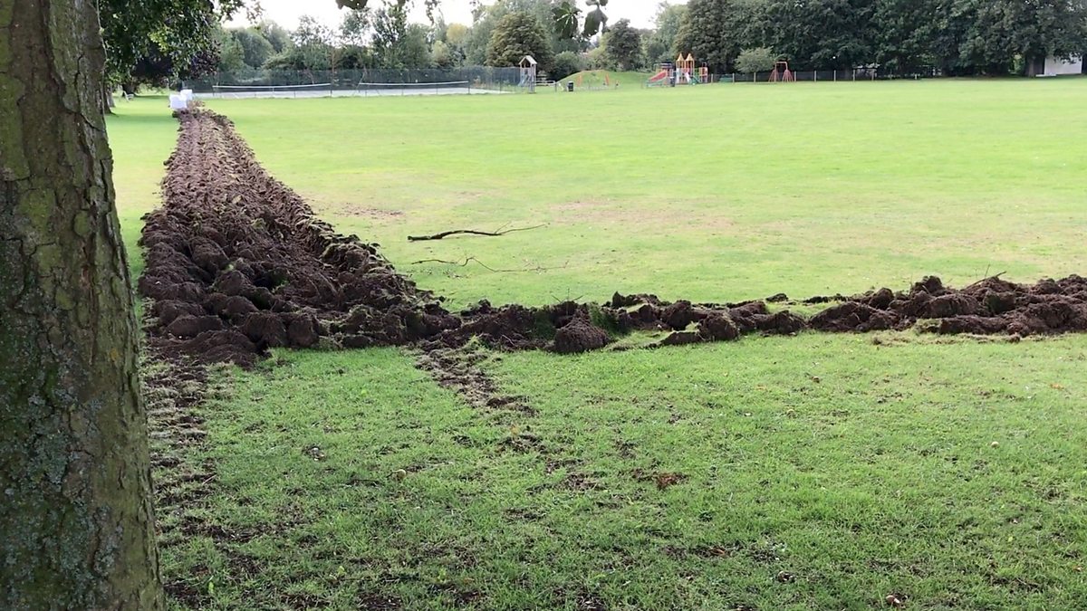 War-like trench dug around playing field