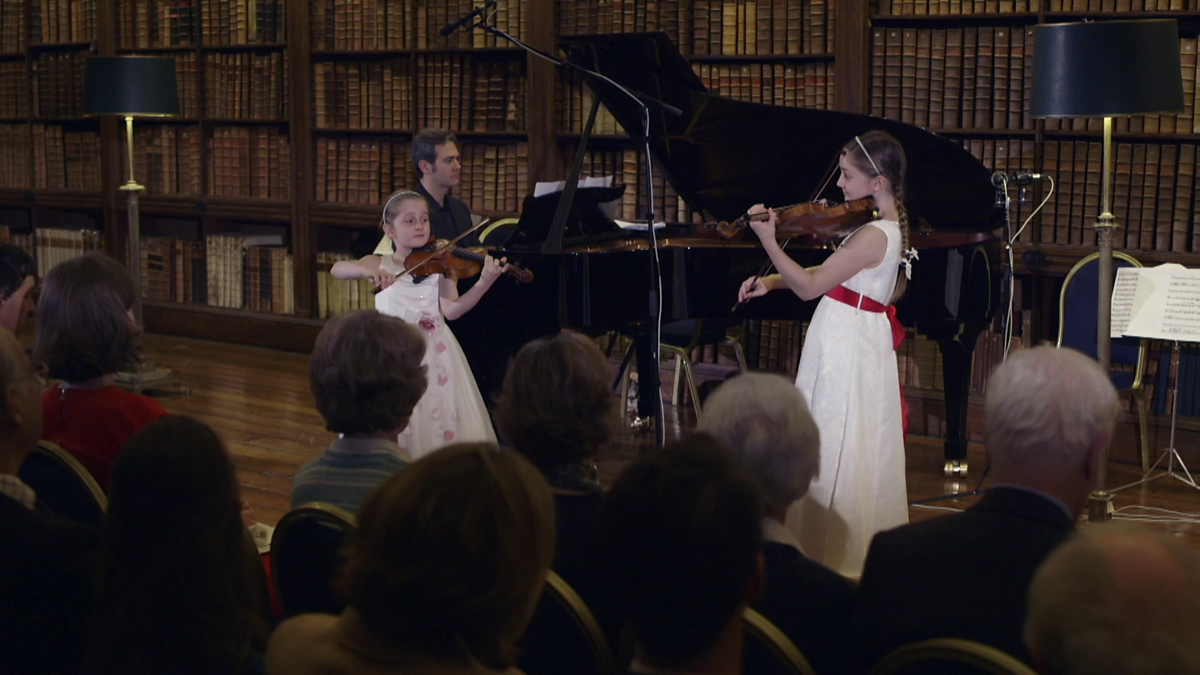 11 year old Alma Deutscher and her 8 year old sister Helen perform one of Alma's compositions at Oriel College, Oxford. Contains interview with Sir Simon Rattle