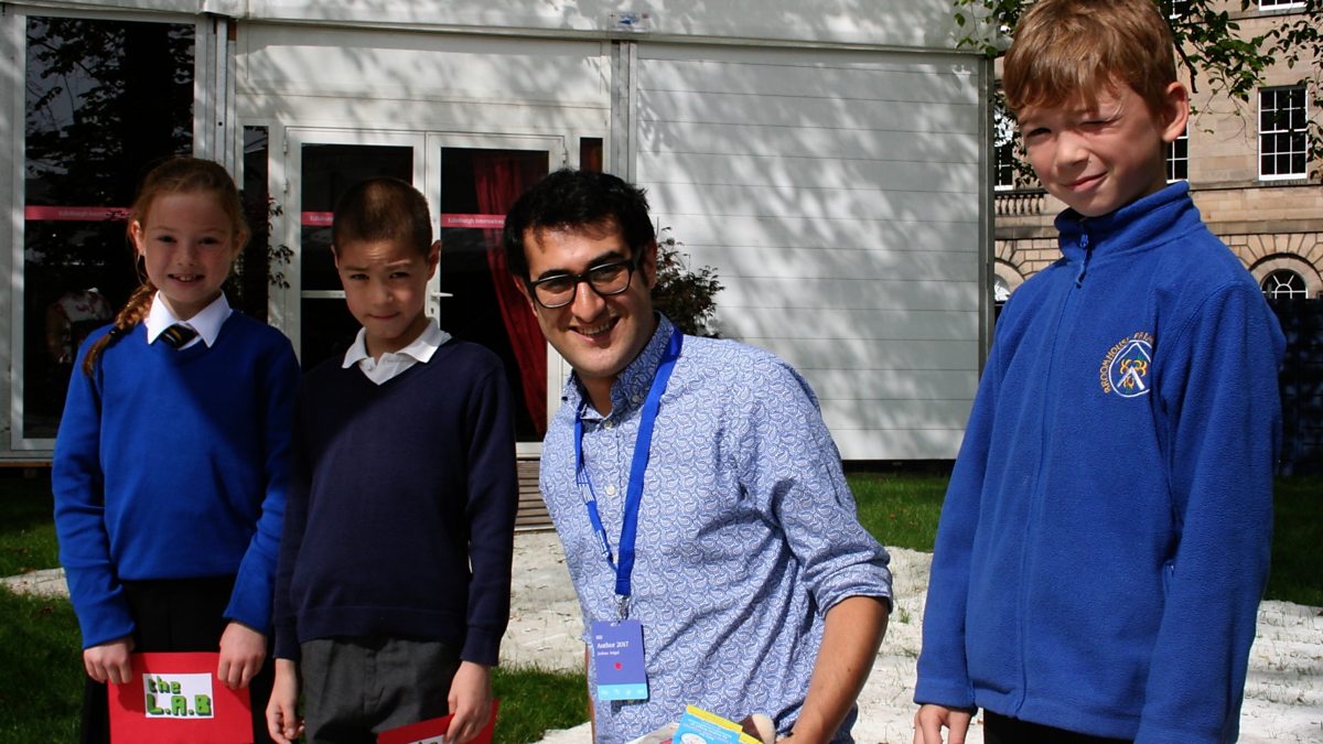 Pupils from Broomhouse Primary interview Author Joshua Siegal in Edinburgh.