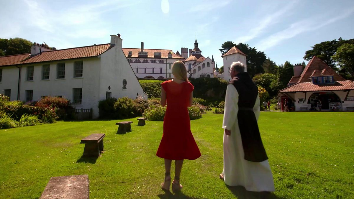 Katherine Jenkins meets Brother David on the centre green in the village on Caldey Island to discuss the history and architecture of the Caldey Monastery dating back to 1910.