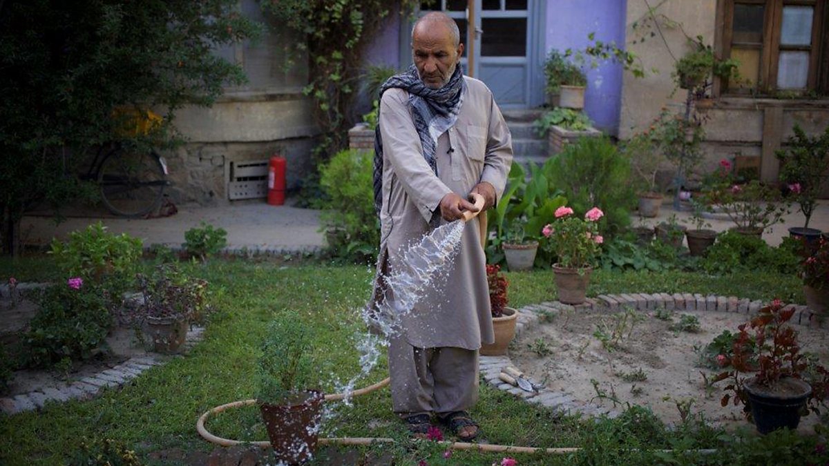 Photo: Kaka Khalil tends his garden in Kabul Credit: BBC