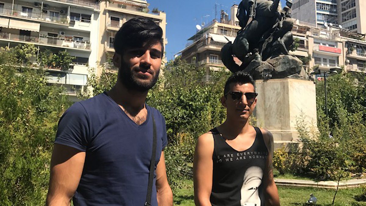 Image: Jaeger and Khalid (R), in Victoria Park, Athens.