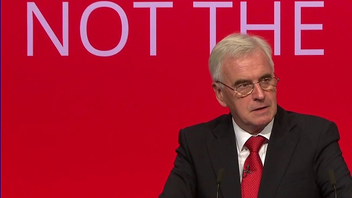 Shadow chancellor John McDonnell told the party conference: " I want people to have no doubt - rail, water, energy, Royal Mail - we are taking them back."