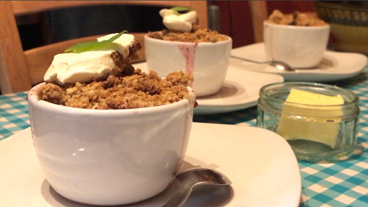 With help from chef Éamonn Ó Catháin, Conall learns how to make a tasty crumble with apples and blackberries from his own garden.