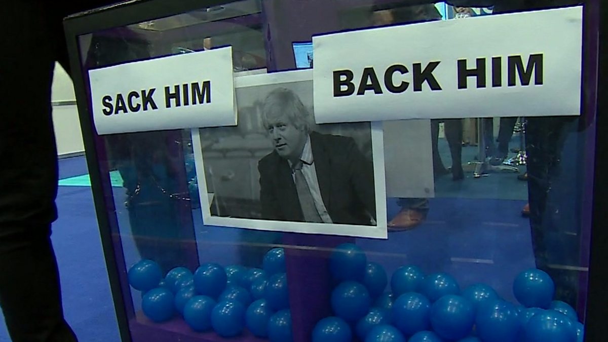 Ellie Price took the Daily Politics mood box, an unscientific test with a box and balls, to see what delegates thought Boris's future.